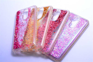 Huawei Mate 20 Lite Uyumlu Yanları Taşlı Sulu Simli Lüx Silikon Kılıf - Rose Gold
