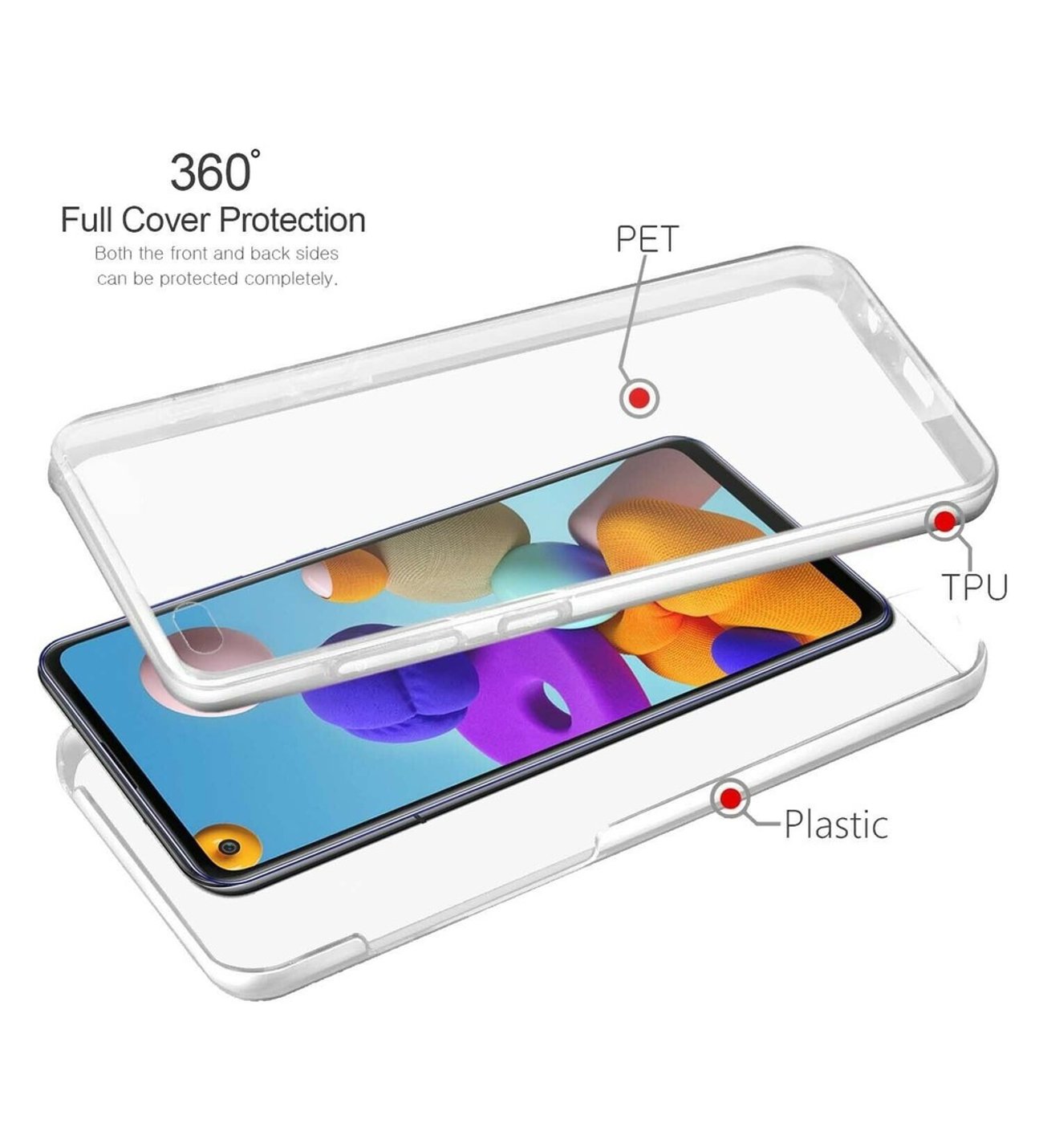 Samsung Galaxy A22 4G Uyumlu Ön Arka 360 Tam Koruma Şeffaf Soft Silikon Kılıf